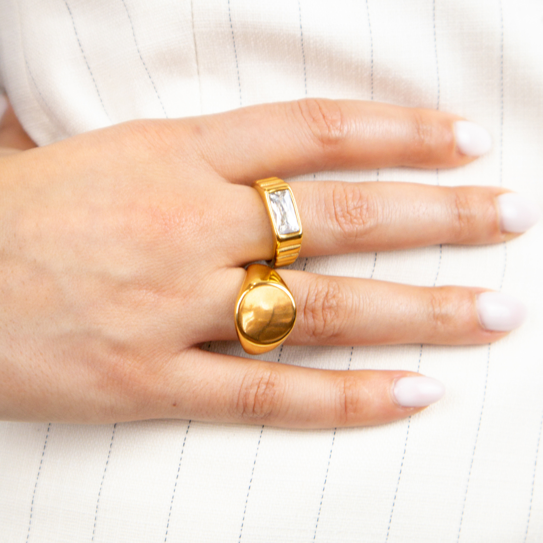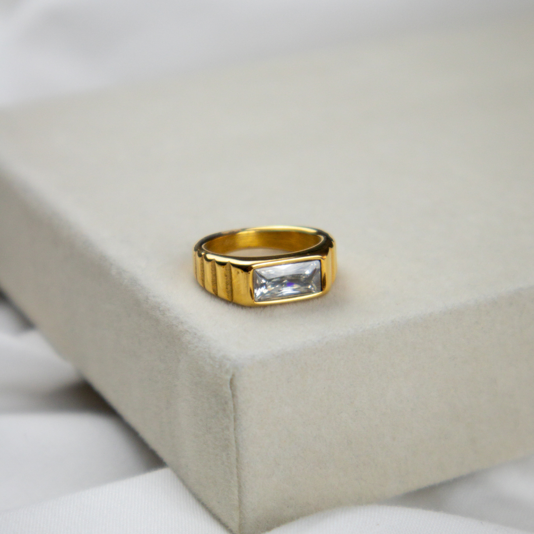 Um anel que brilha mesmo com os gestos mais pequenos.