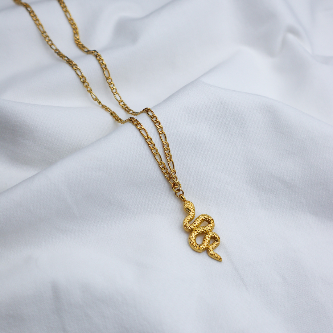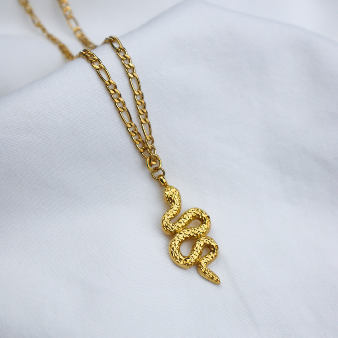 Com um pendente detalhado de cobra trabalhado é em aço inoxidável resistente à água, garantindo durabilidade e estilo em qualquer ocasião.