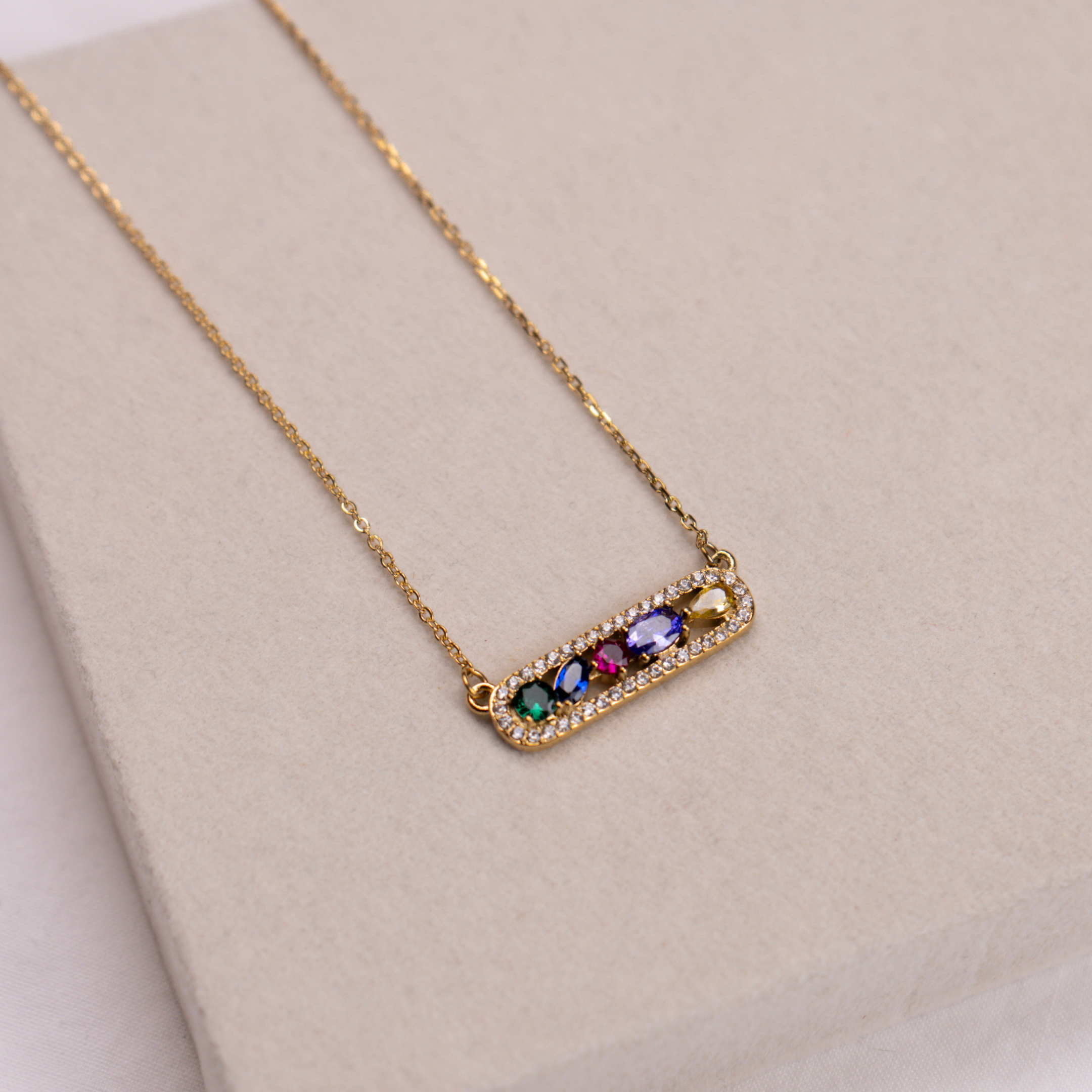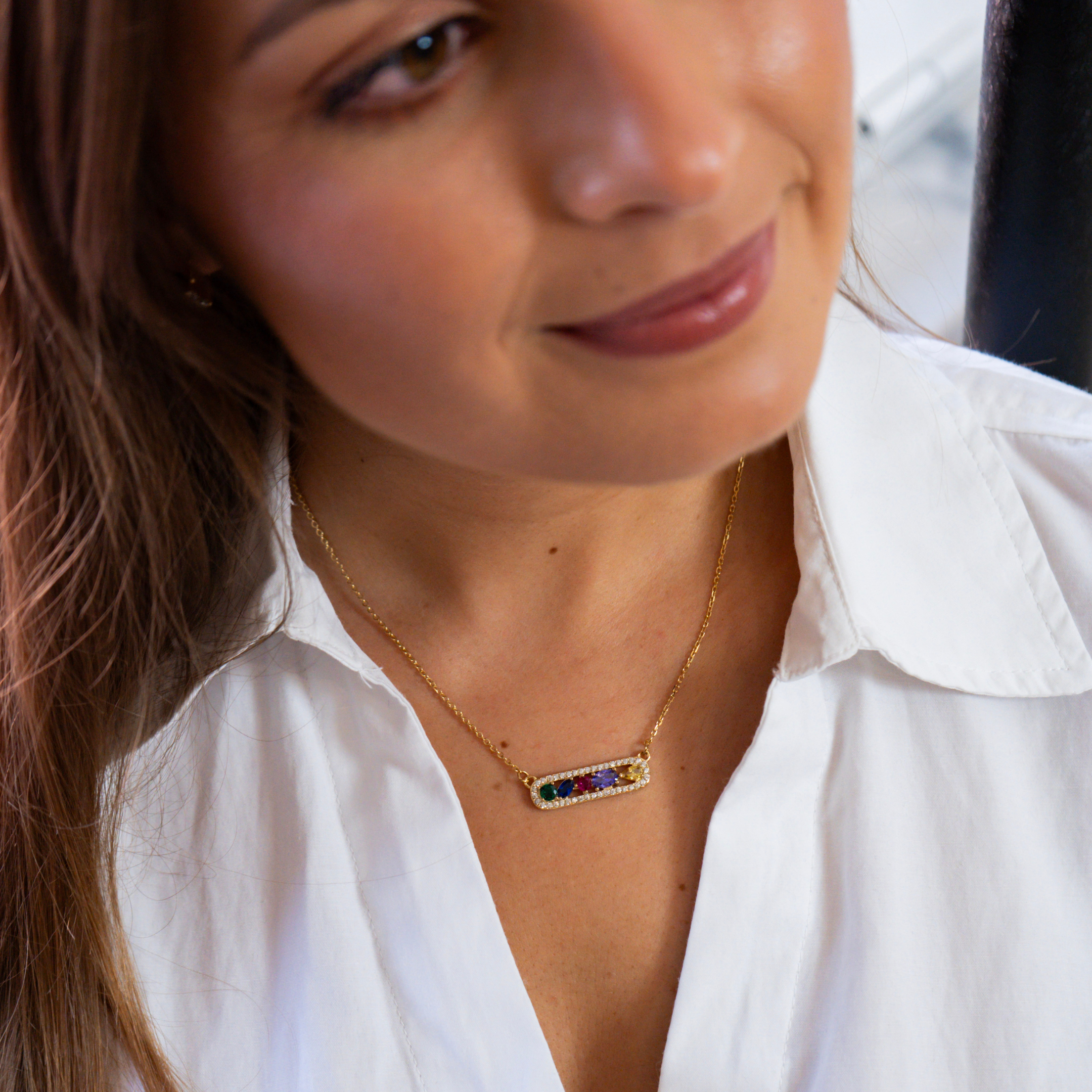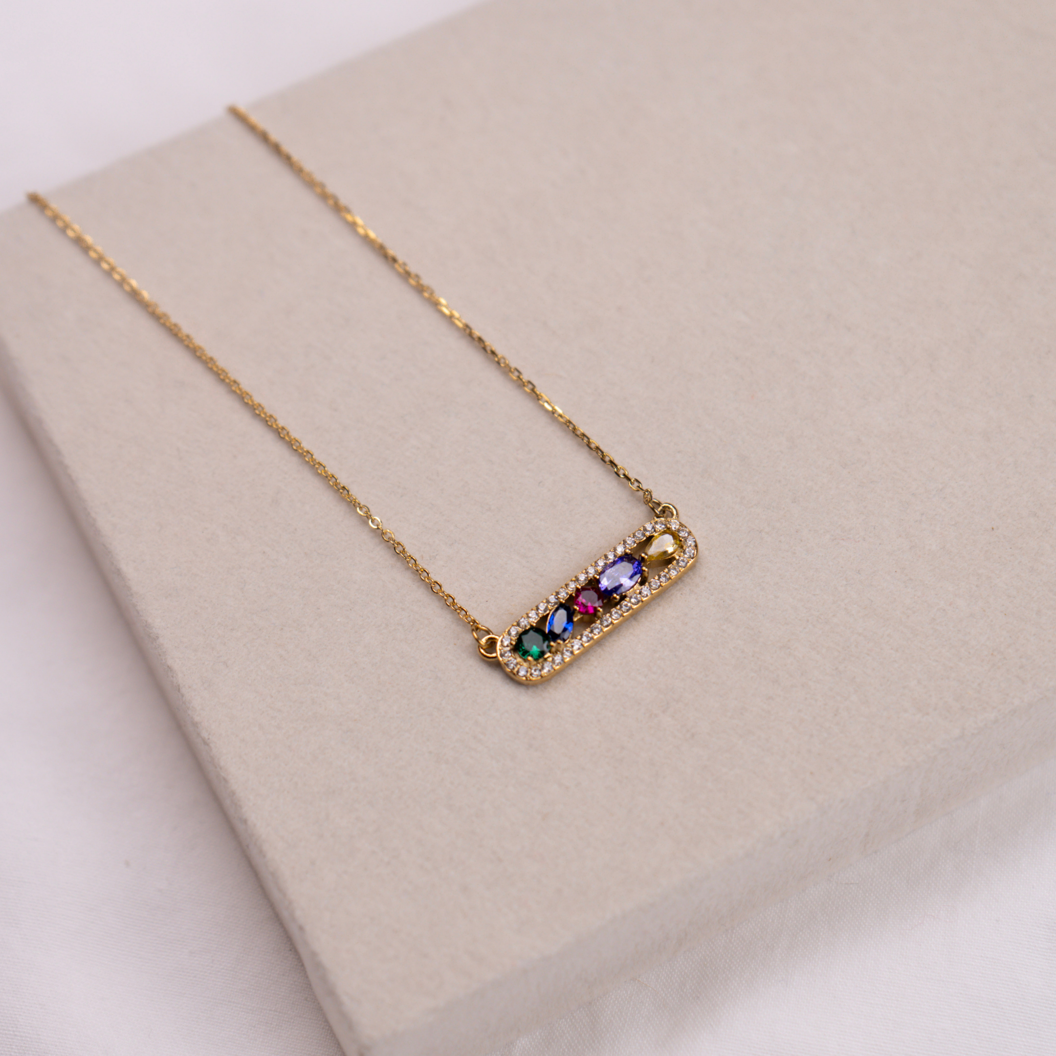 O colar Vita traz vida a qualquer look. Com zircónias coloridas e brilho delicado, é uma peça que transmite energia, leveza e autenticidade.