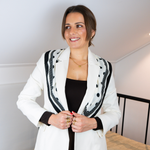 Minimalista, mas com presença. O lenço Kaia reinventa o clássico preto e branco com uma abordagem moderna, criando um equilíbrio perfeito entre simplicidade e estilo.