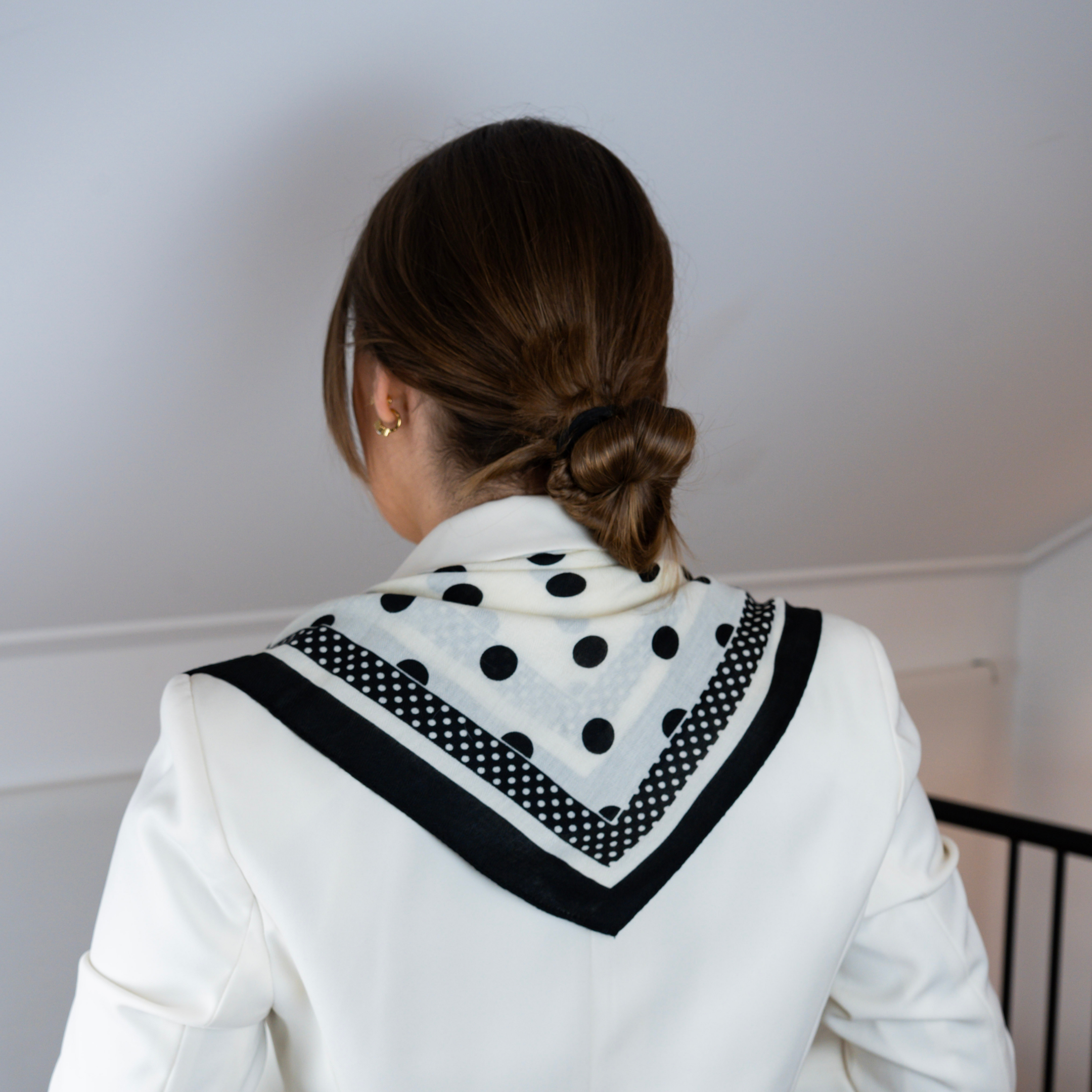• Lenço com padrão de bolinhas em preto e branco