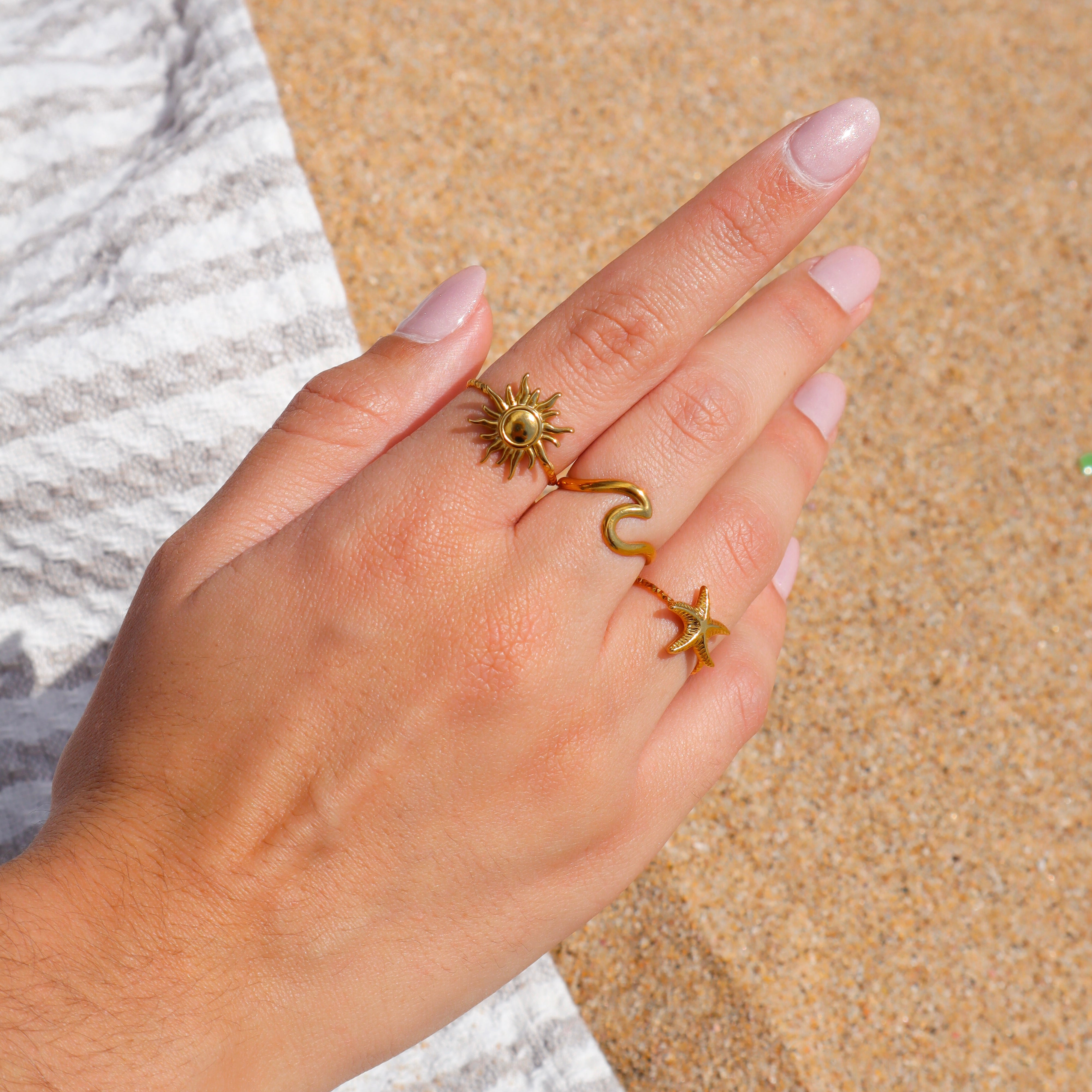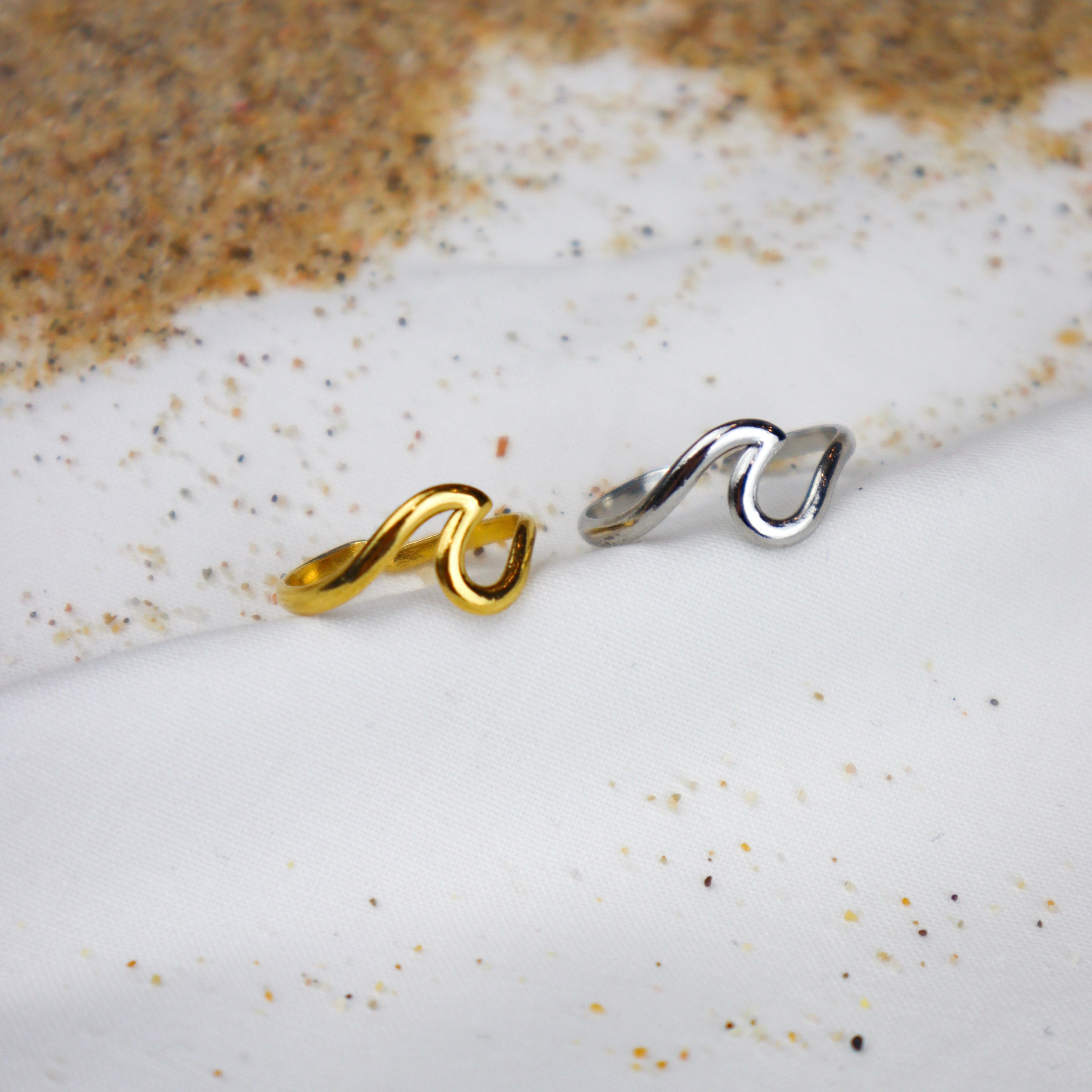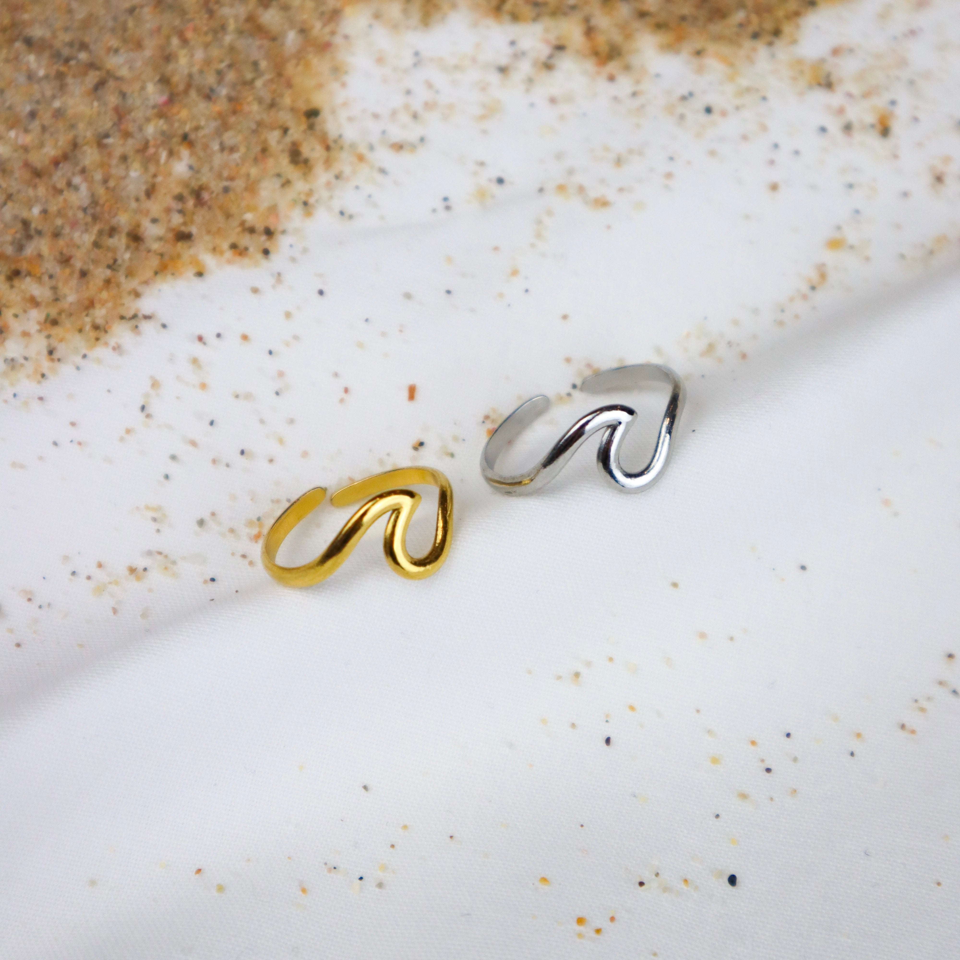 Anel ajustável de aço inoxidável com onda do mar.