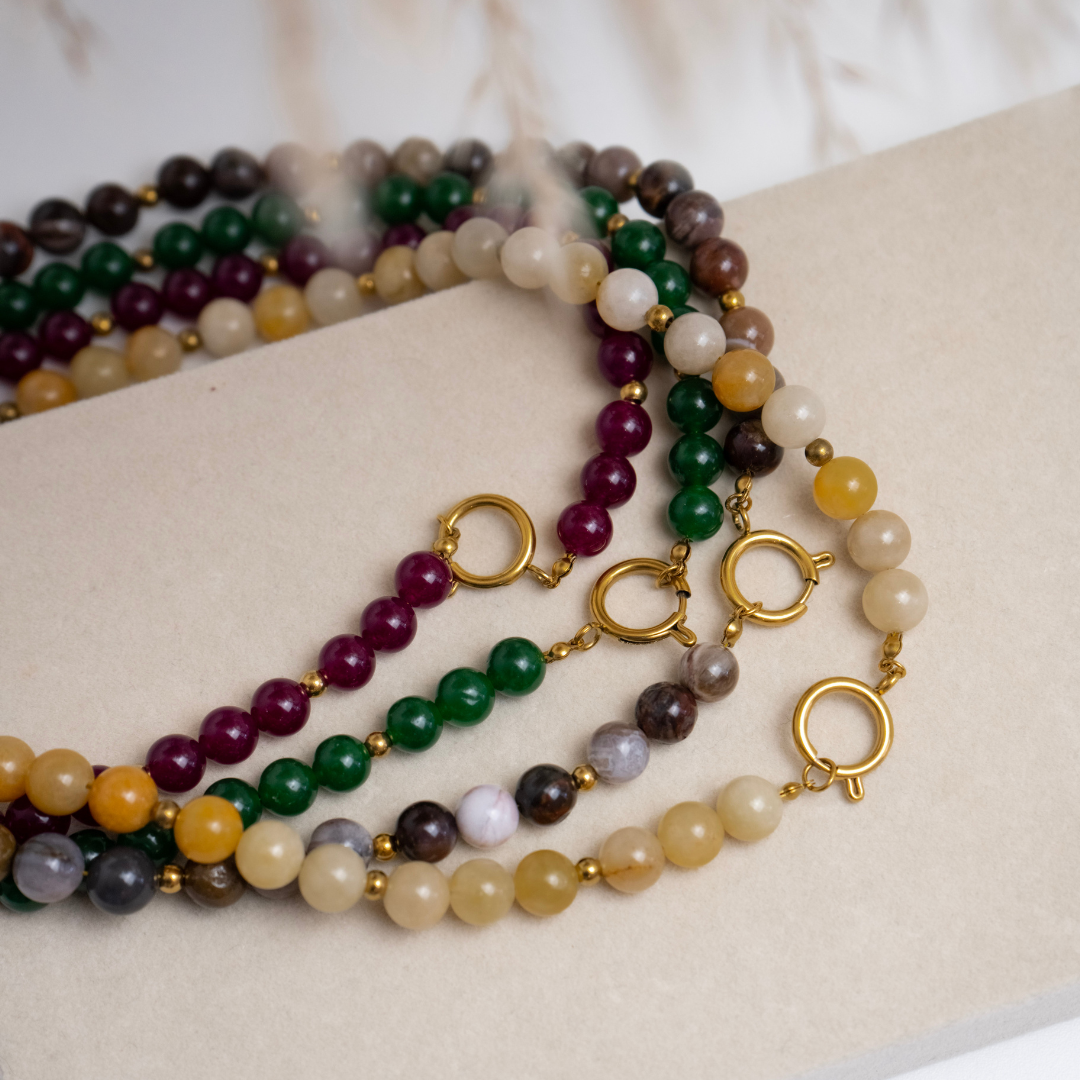 Most of our items are handmade by us, such as necklaces, bracelets, scrunchies and some earrings.