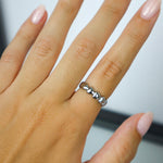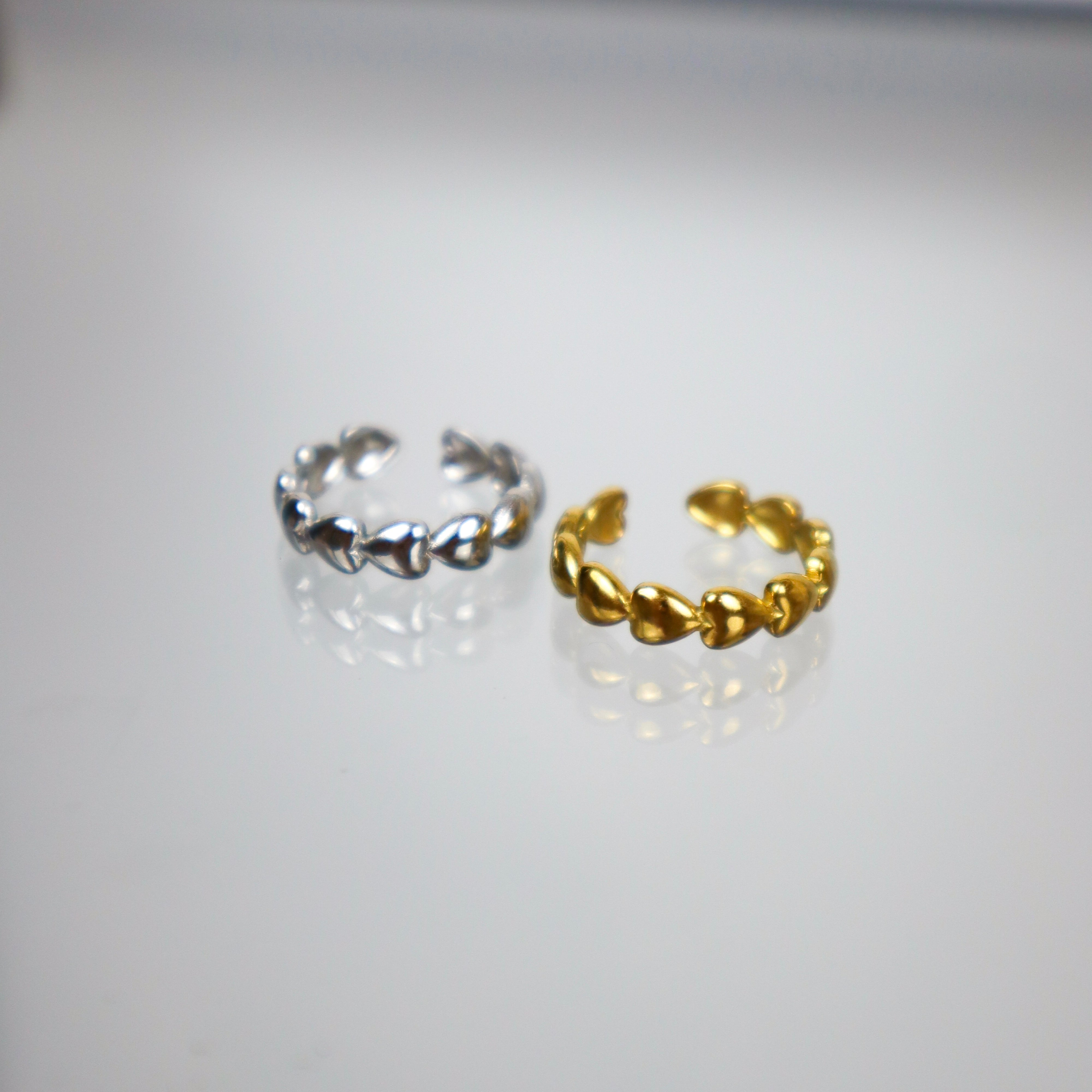 Stainless steel ring with hearts.