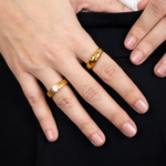 Joya combines a chunky shape with the subtle shine of small cubic zirconia. A striking piece for those who like accessories with presence without exaggeration.