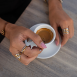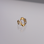O Anel Merge é a expressão da dualidade em forma de joia: dourado e prateado cruzam-se num design minimalista e elegante.