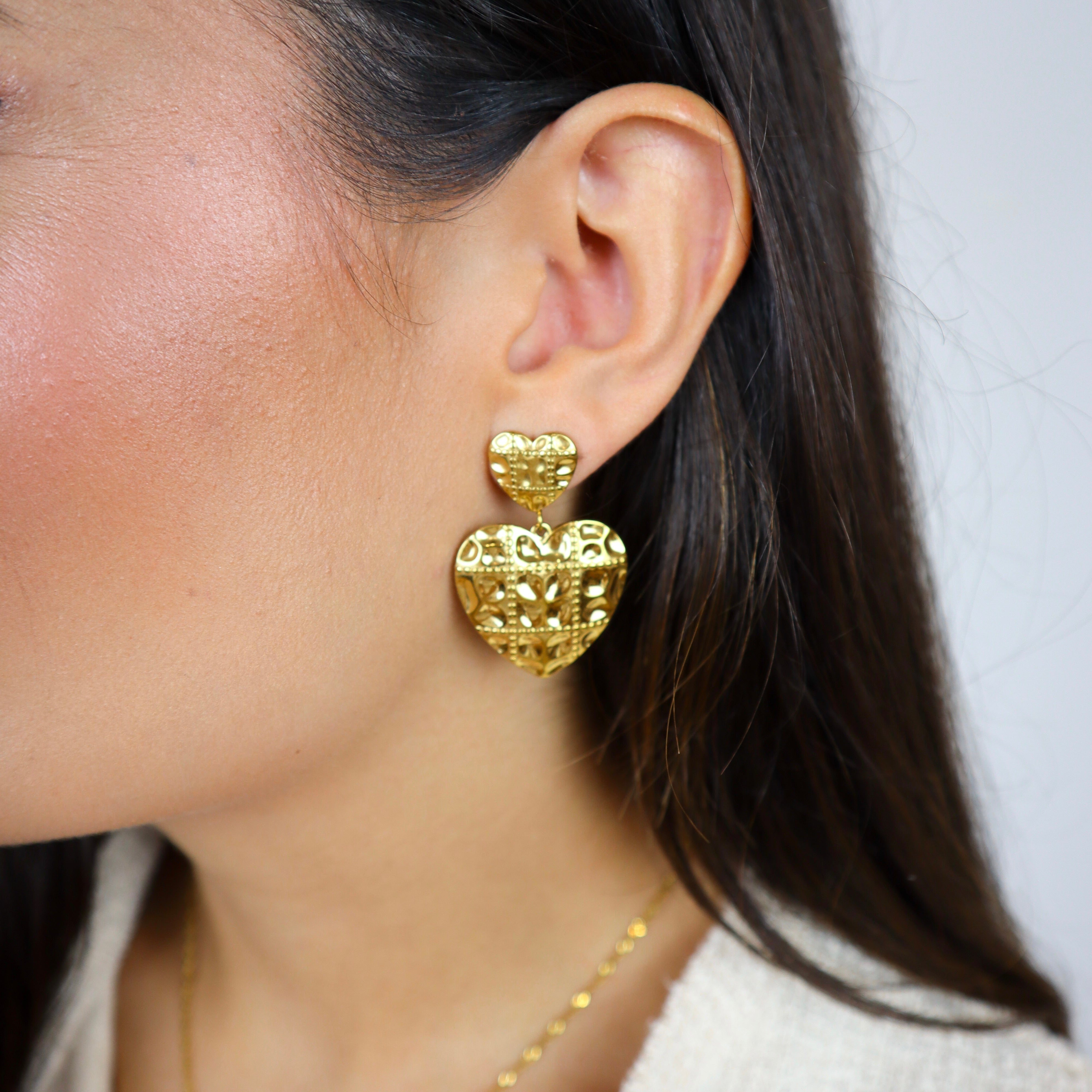 Mellanie Earrings are the perfect expression of romance and sophistication. With their charming heart-shaped design, these stainless steel earrings add a touch of tenderness and elegance to any look, making them ideal for both everyday wear and special occasions.