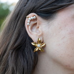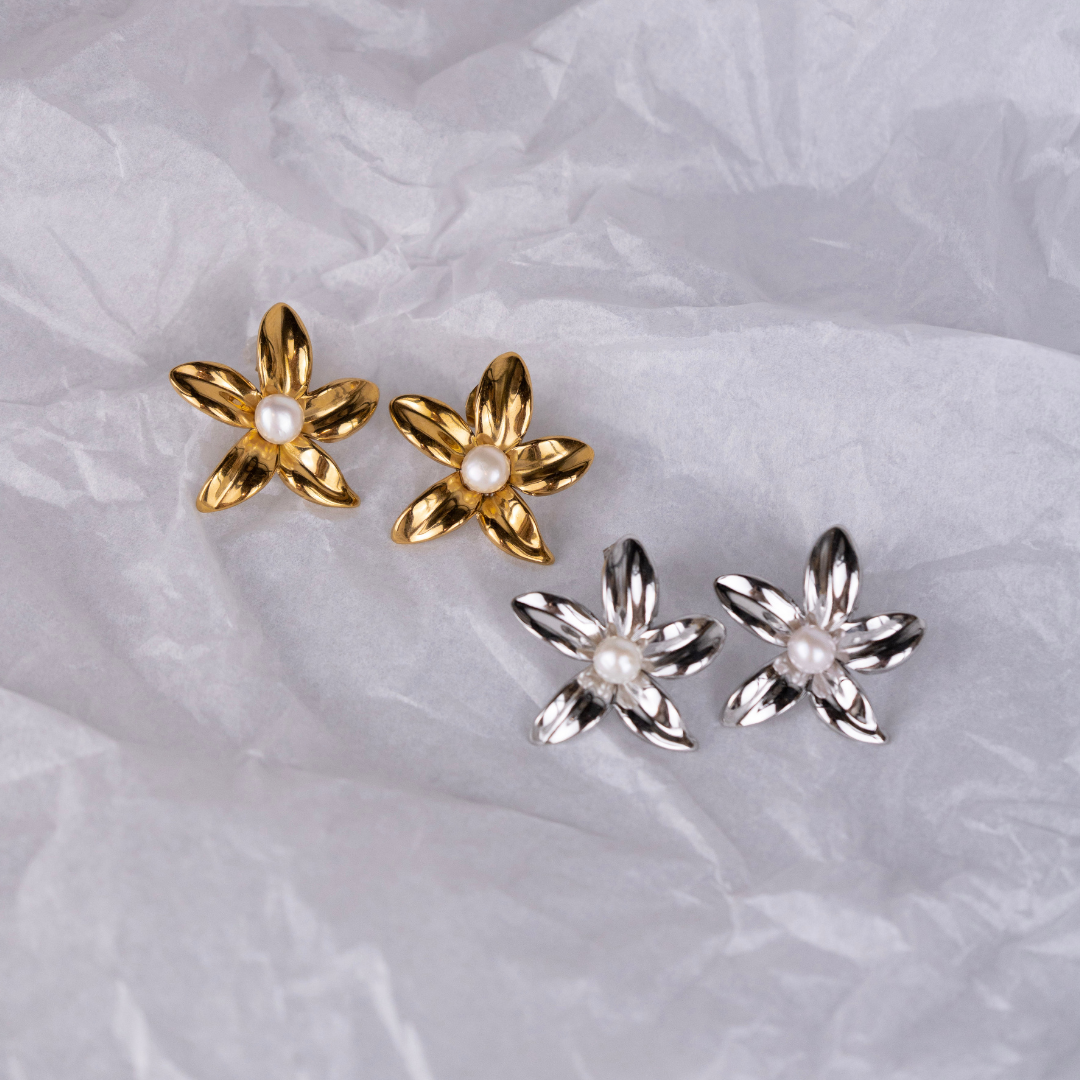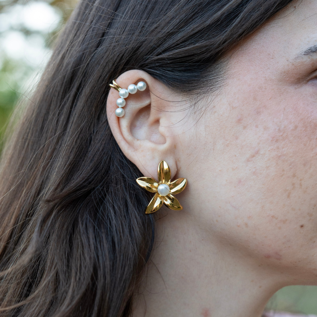 Românticos e elegantes, os Brincos Amélie são a fusão perfeita entre a leveza das flores e o brilho da pérola. Disponíveis em dourado ou prateado, são uma peça delicada para usar todos os dias.