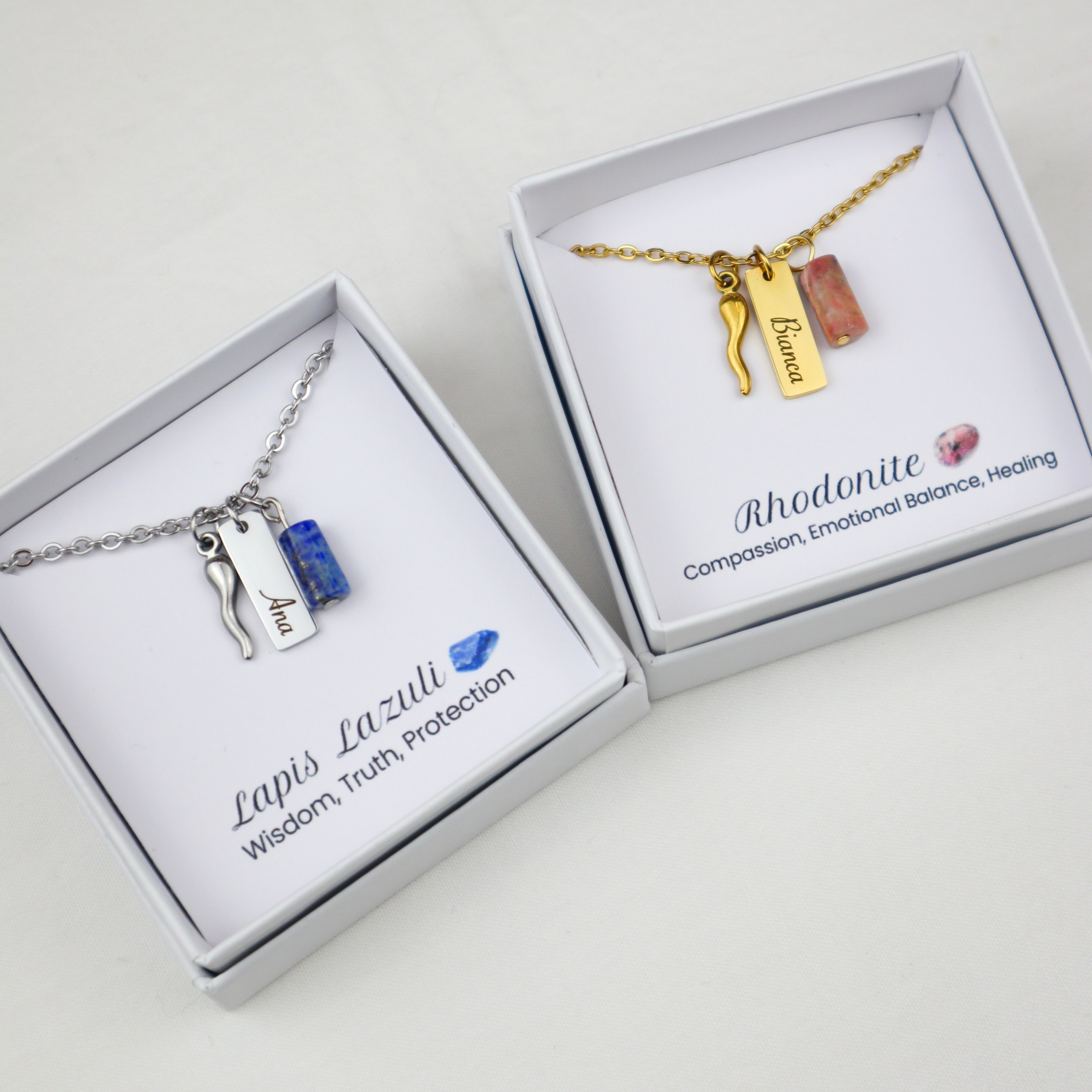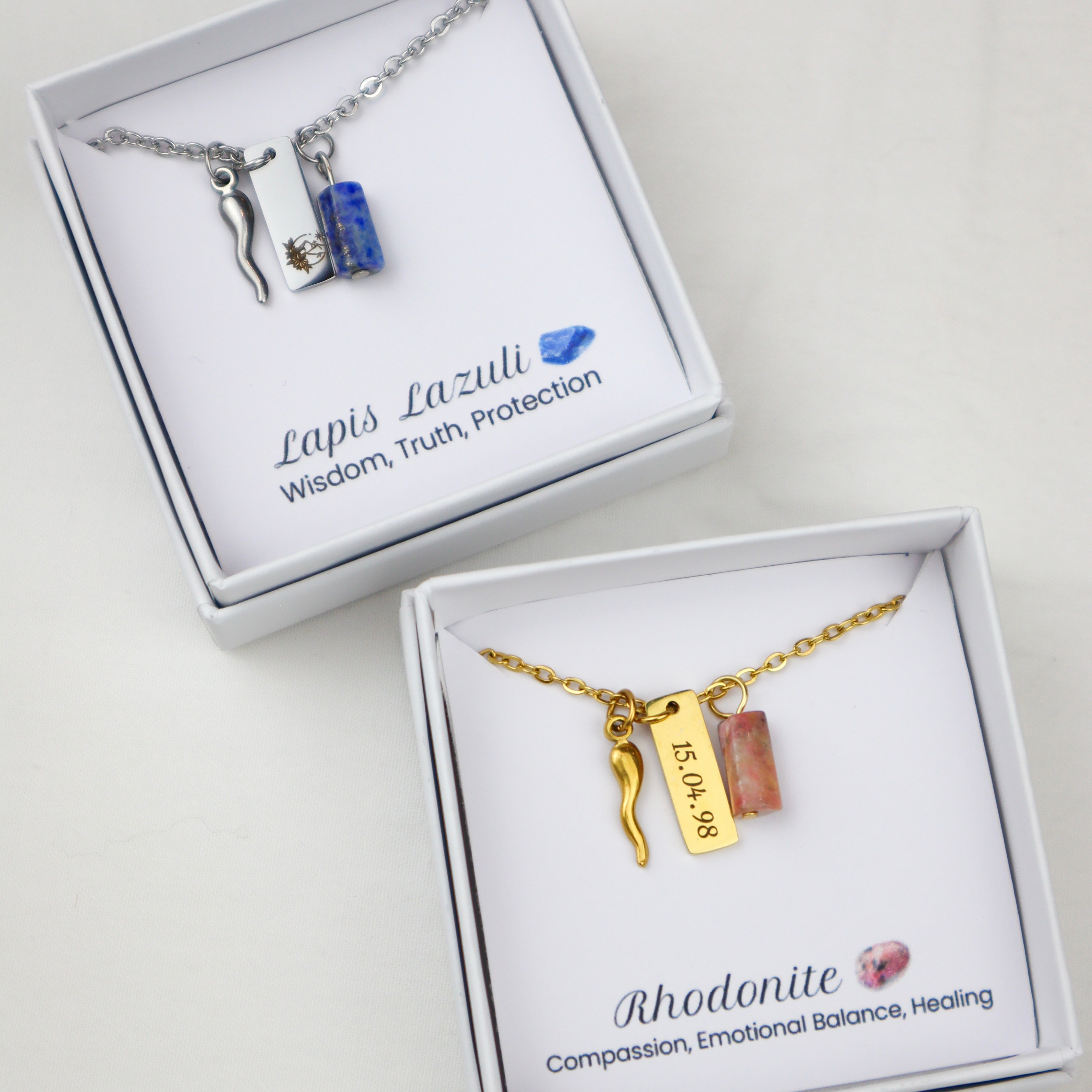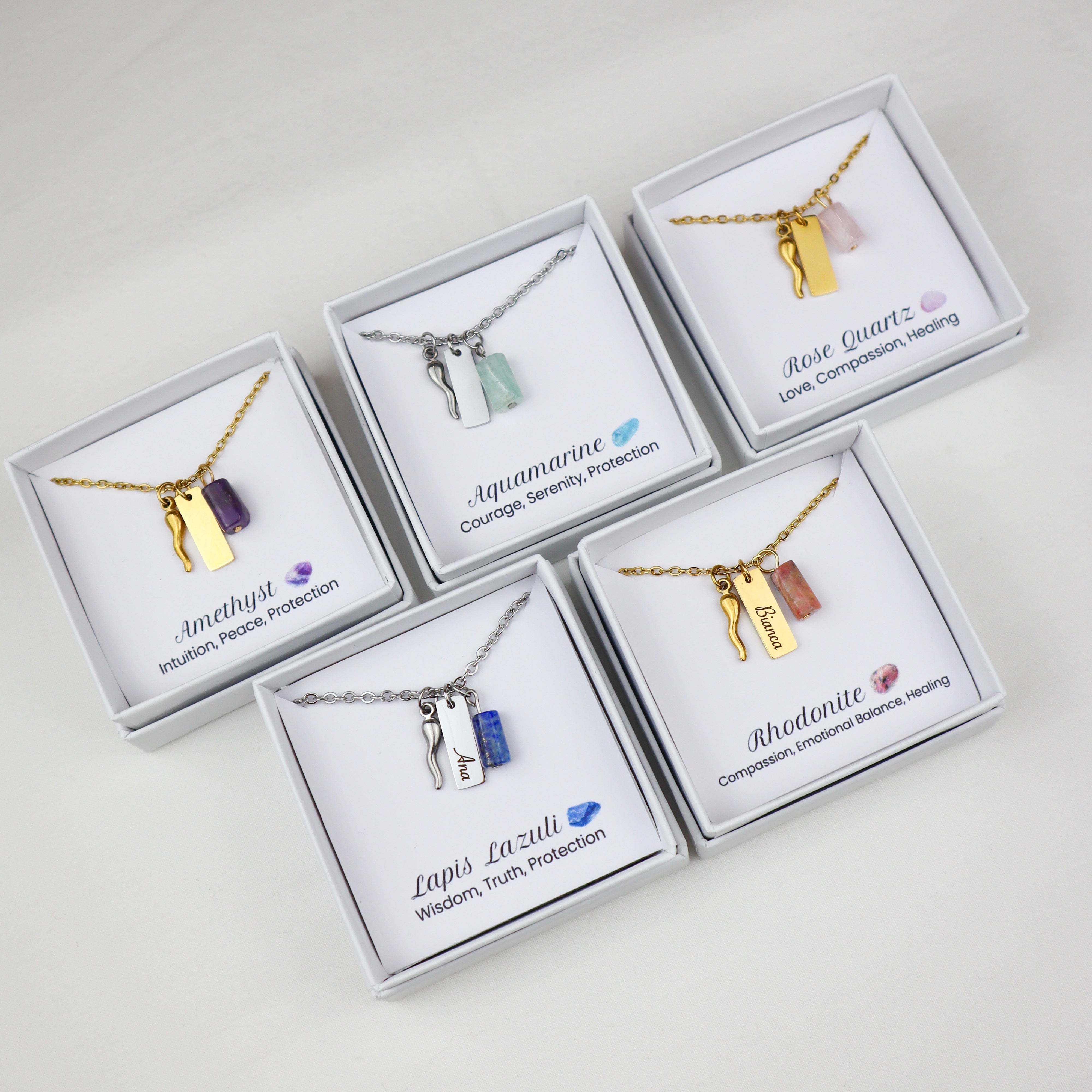 • Natural Stones : Choose from Lapis Lazuli, Rose Quartz, Aquamarine, Amethyst or Rhodonite, each with a deep meaning and special energies.