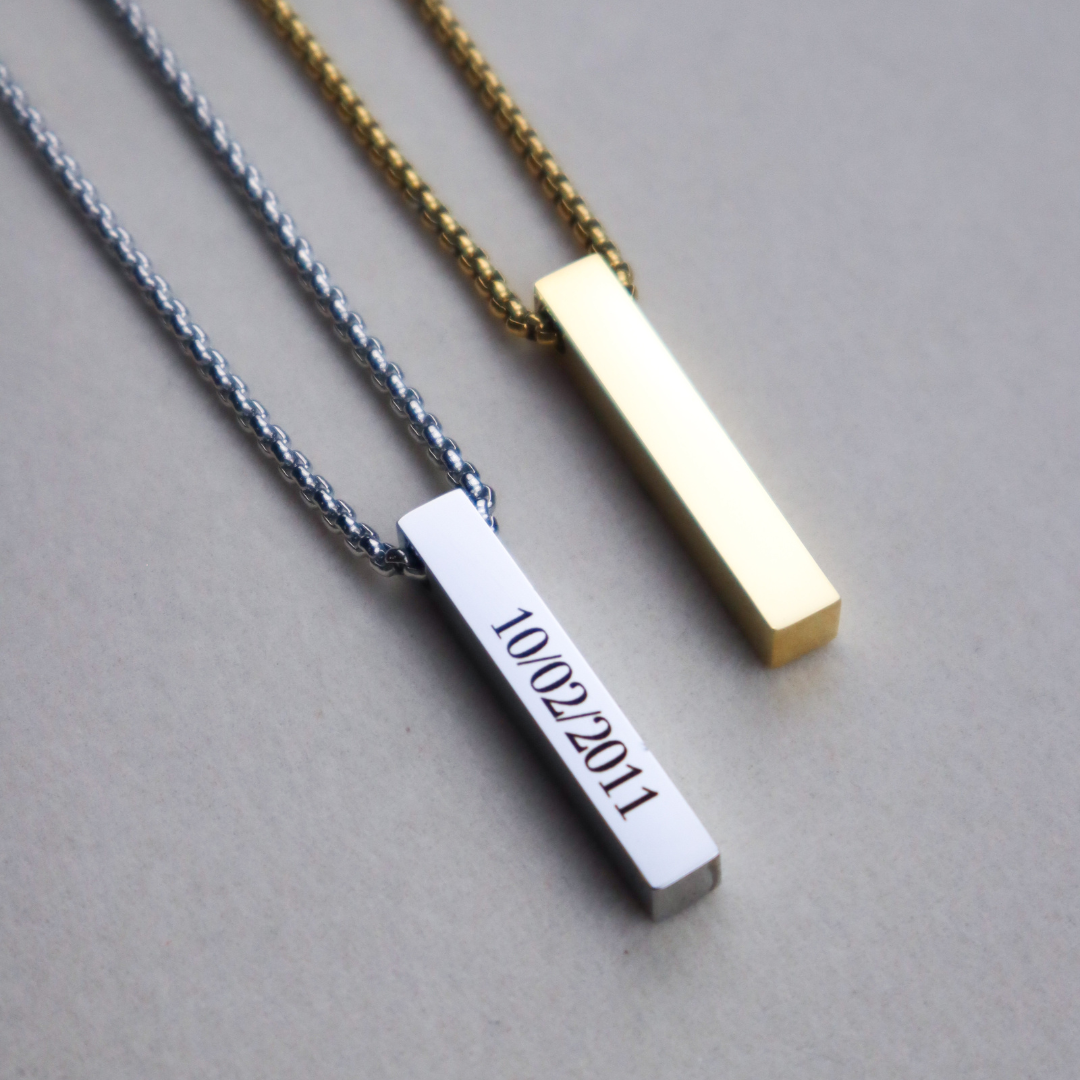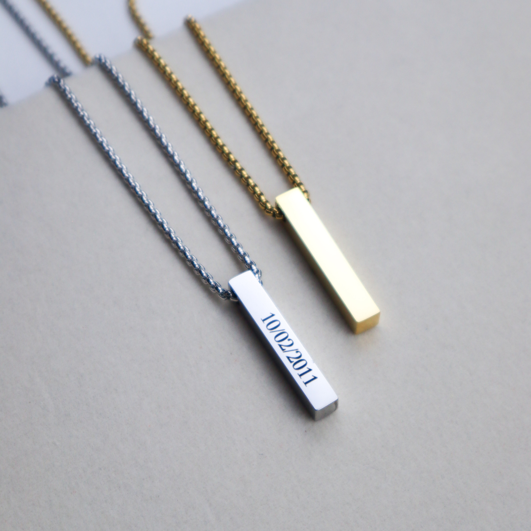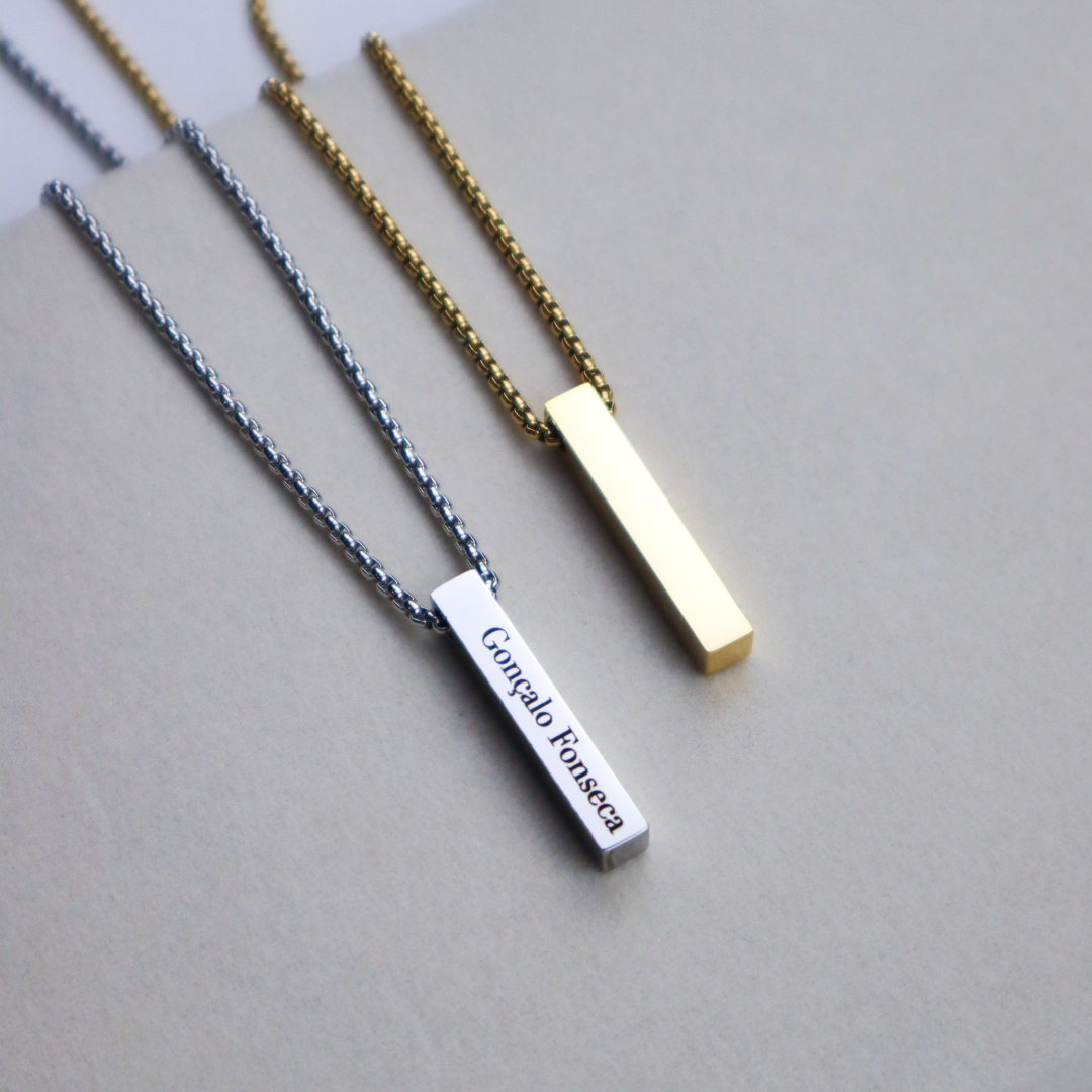 The Axis necklace lets you engrave up to four different messages on an elegant rectangular pendant. Whether it’s a name, a special date or a motivational word, this necklace transforms your stories into timeless jewellery. Available in silver and gold , it’s the perfect choice for those looking for a minimalist touch with deep meaning.