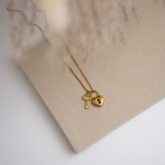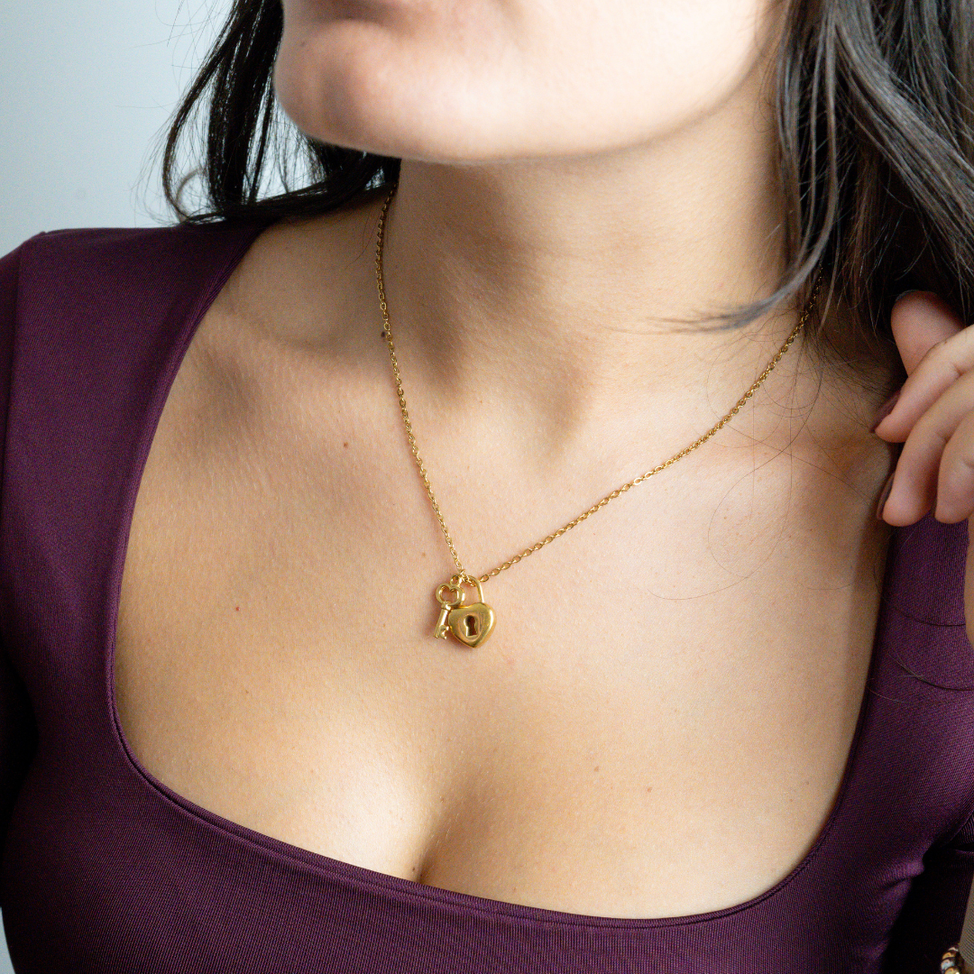 Dois elementos, um só significado. O Colar Promise combina uma pequena chave com um cadeado dourado, numa corrente elegante e simbólica. Representa confiança, ligação e o poder de prometer a quem (ou ao que) mais importa.