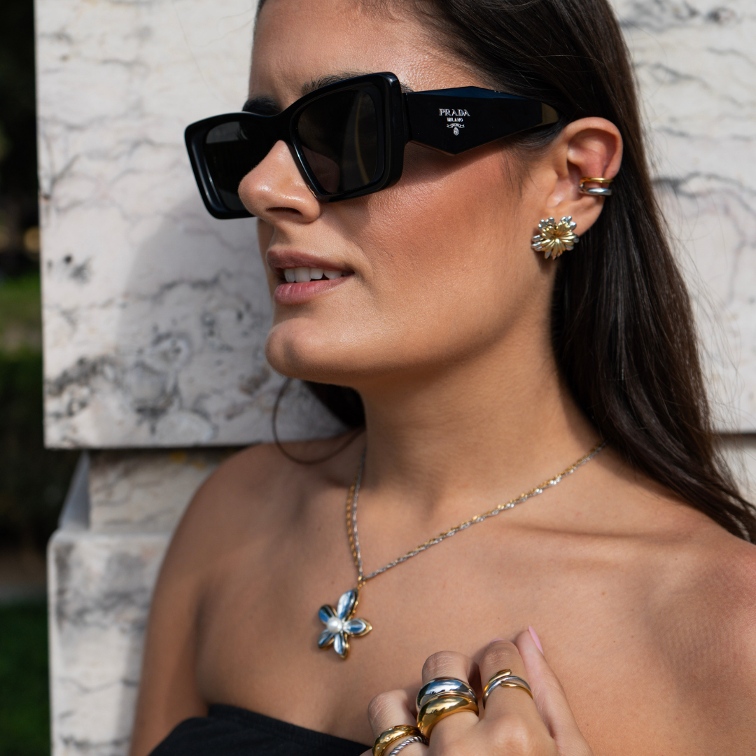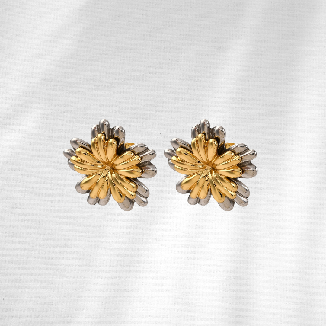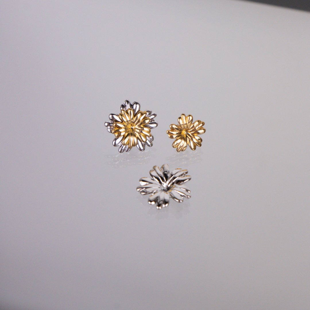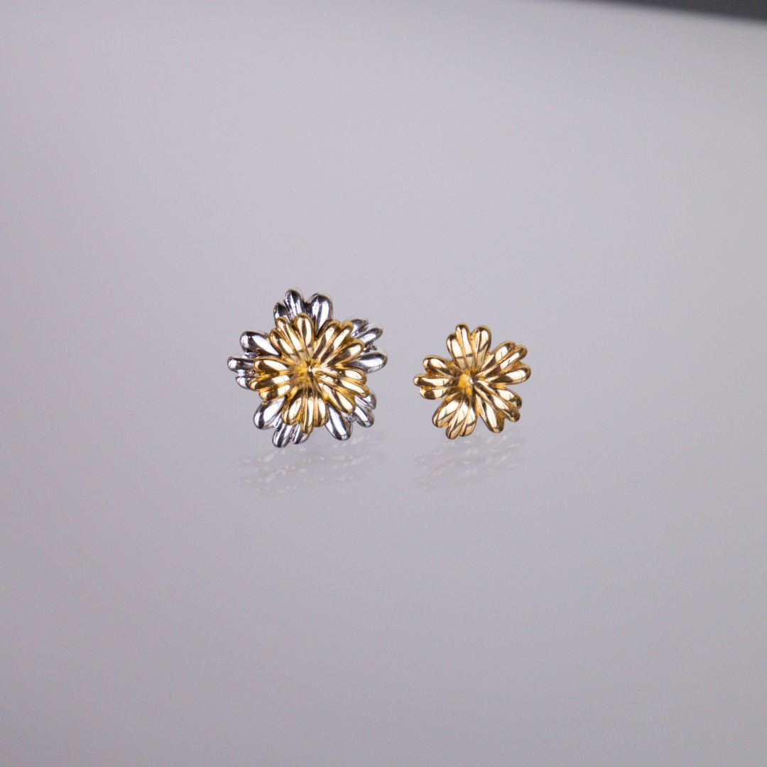 Os Brincos Eden celebram a beleza intemporal da natureza com um design floral cheio de simbolismo. Mais do que um par de brincos, são uma peça versátil que se adapta a ti: podes usá-los com a flor em dourado e prateado para um look mais marcante, ou retirar a parte prateada e ficar apenas com a flor dourada, para um estilo mais delicado.