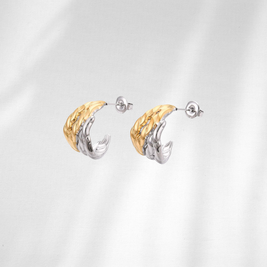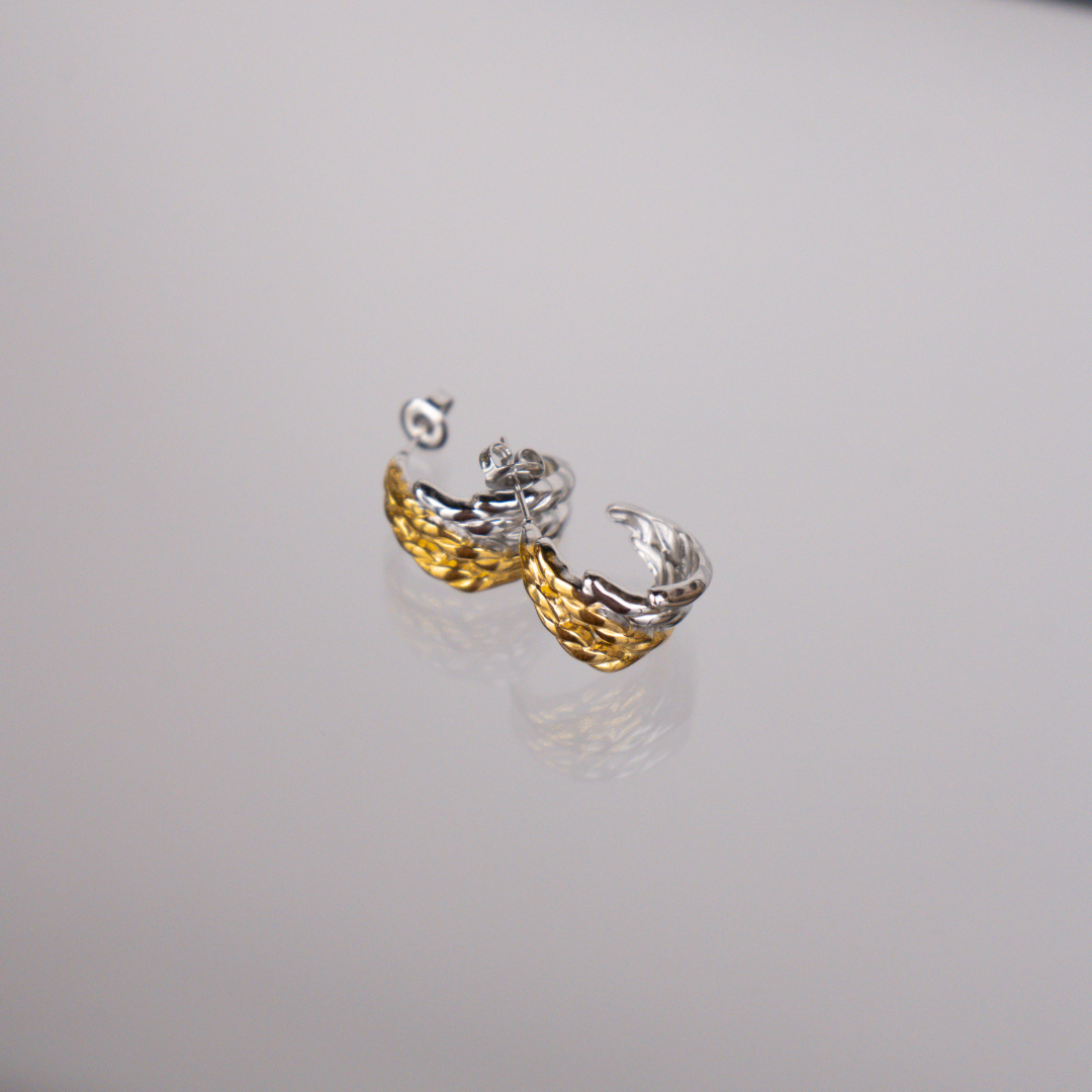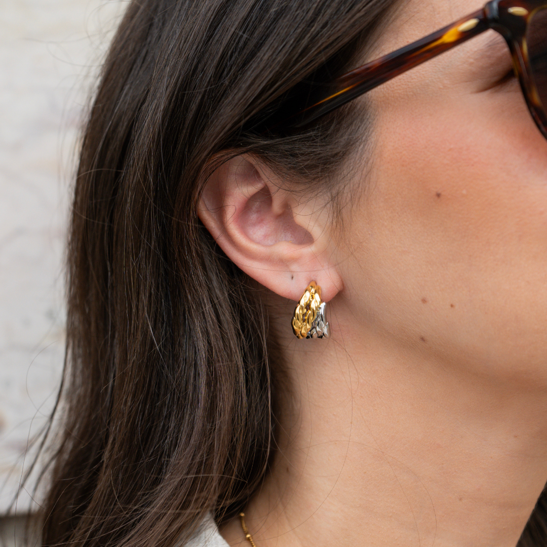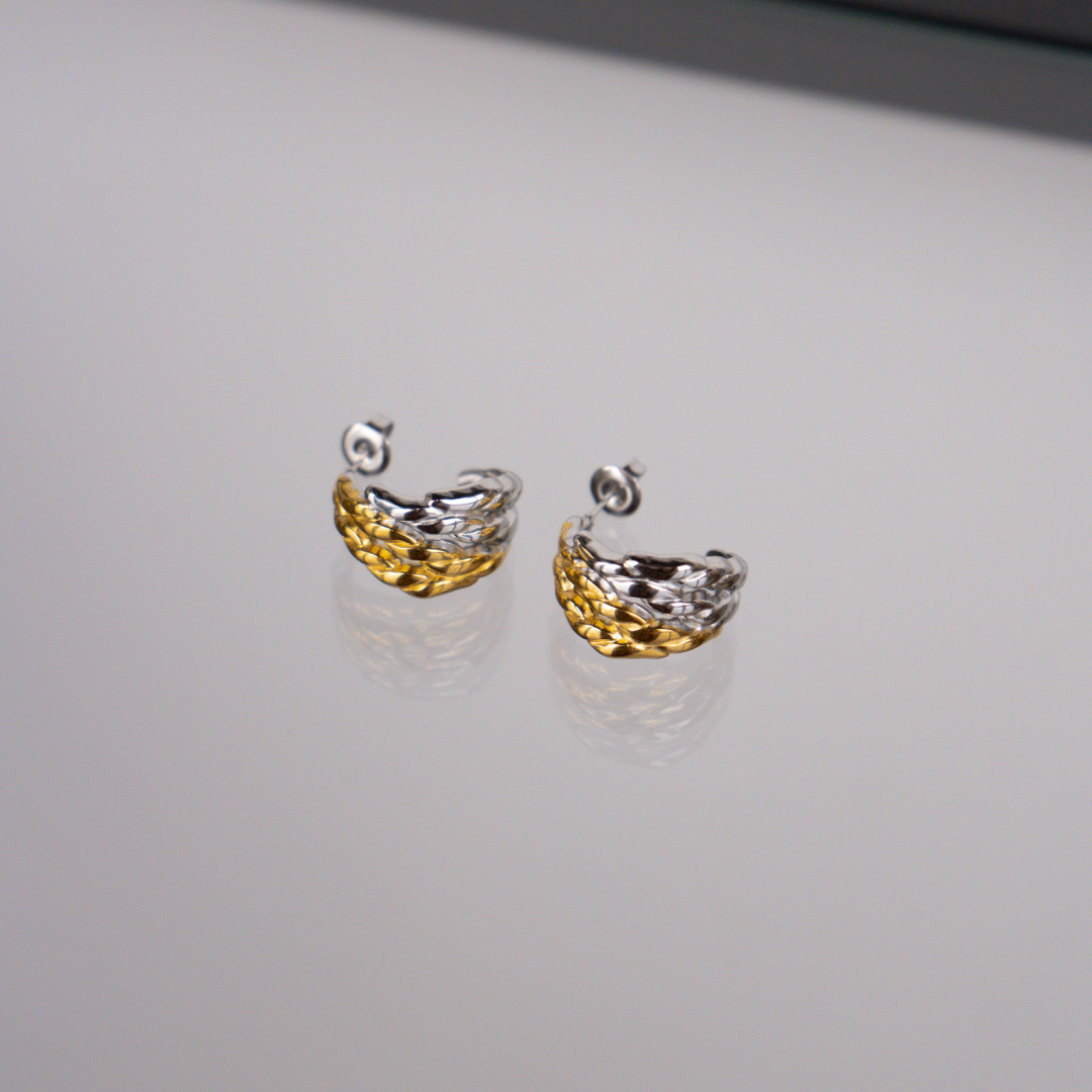 Inspirados no brilho de uma chama, os Brincos Flare juntam dourado e prateado numa textura orgânica que dá ritmo e luz ao rosto. Leves e marcantes, são perfeitos para elevar looks do dia a dia ou destacar ocasiões especiais.