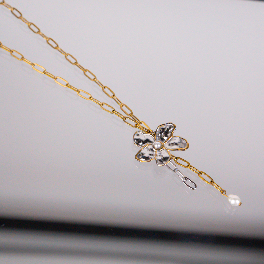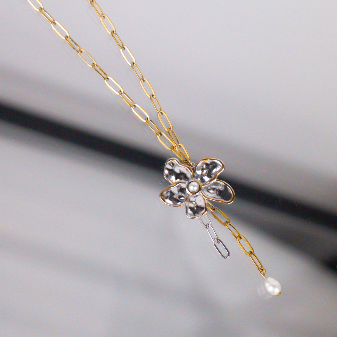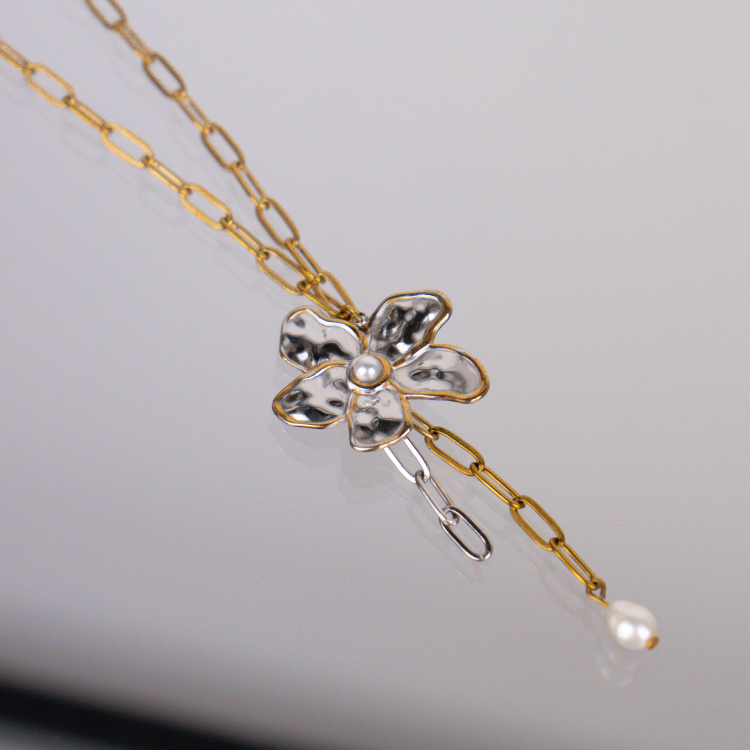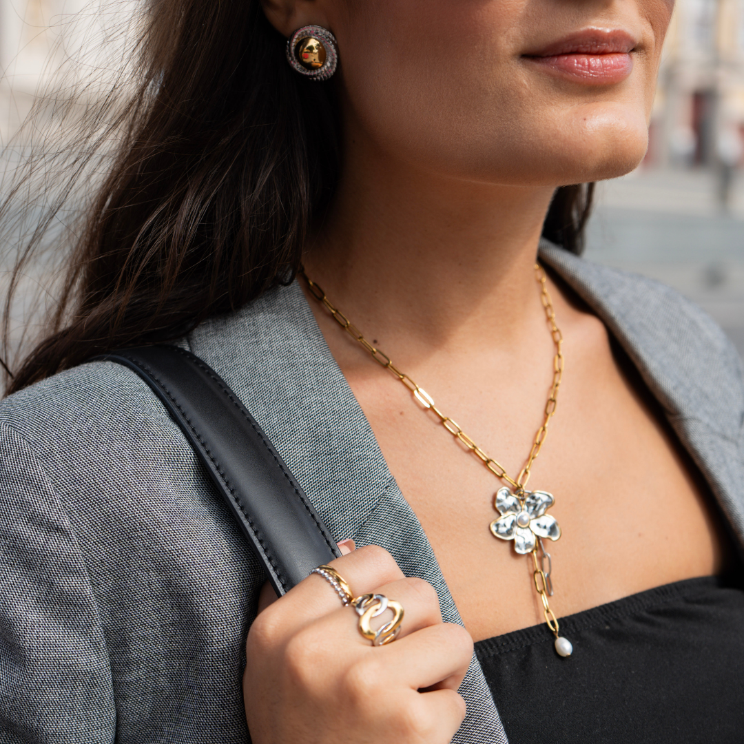 O Colar Bloom combina o simbolismo da flor com o brilho do dourado e prateado, criando uma peça delicada e cheia de vida. Perfeito para trazer frescura e leveza ao teu dia-a-dia.