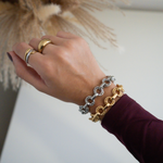 Com elos circulares trabalhados e acabamento texturado, a Pulseira Emma é uma peça que se destaca mesmo nos looks mais simples. Uma proposta elegante, moderna e com presença.