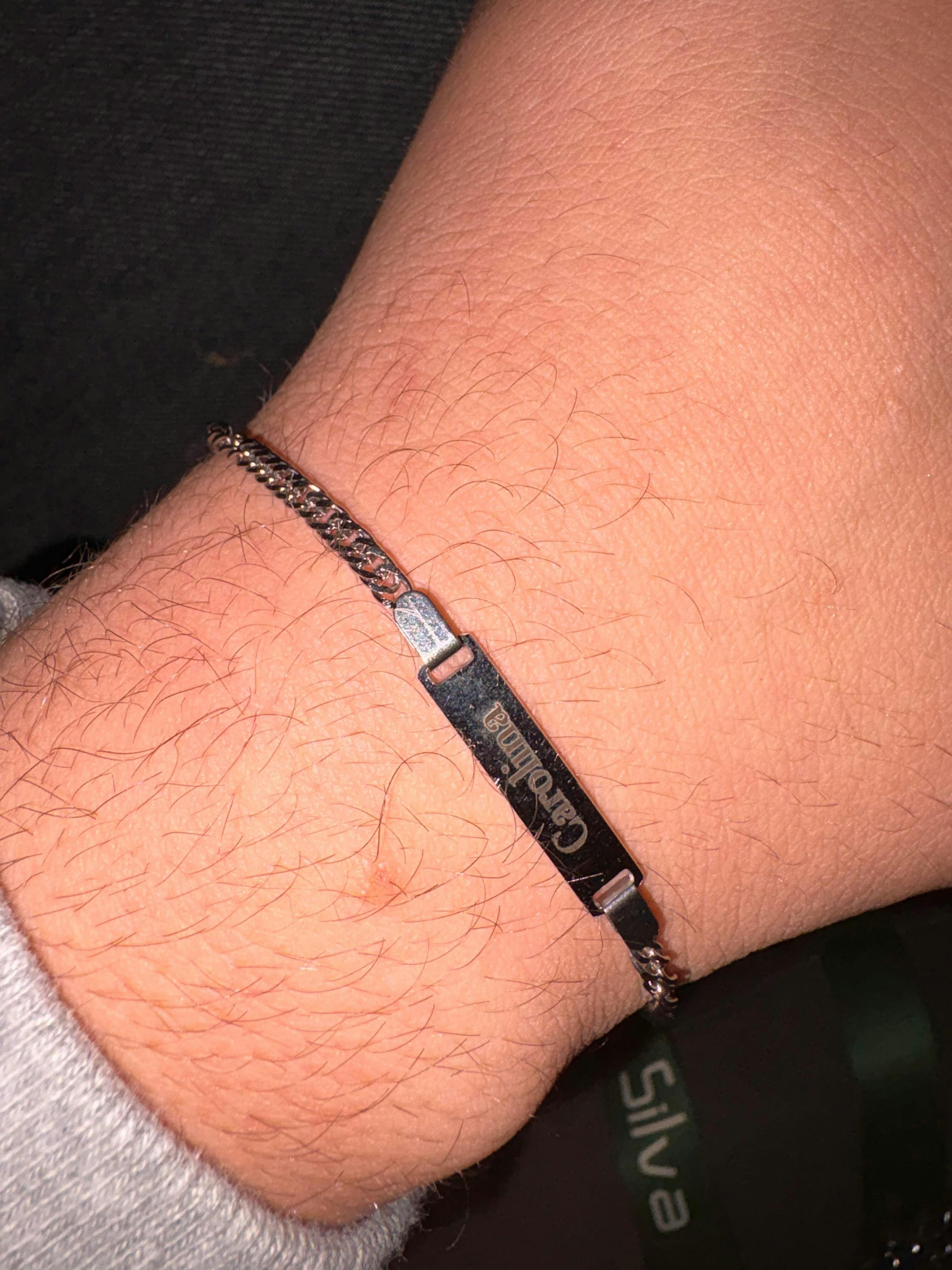 Em aço inoxidável resistente à água, garante durabilidade e conforto no dia a dia. Ao ser ajustável (tamanho mínimo de 18 cm e máximo de 23 cm), adapta-se perfeitamente ao teu pulso, proporcionando um toque discreto, mas cheio de impacto.